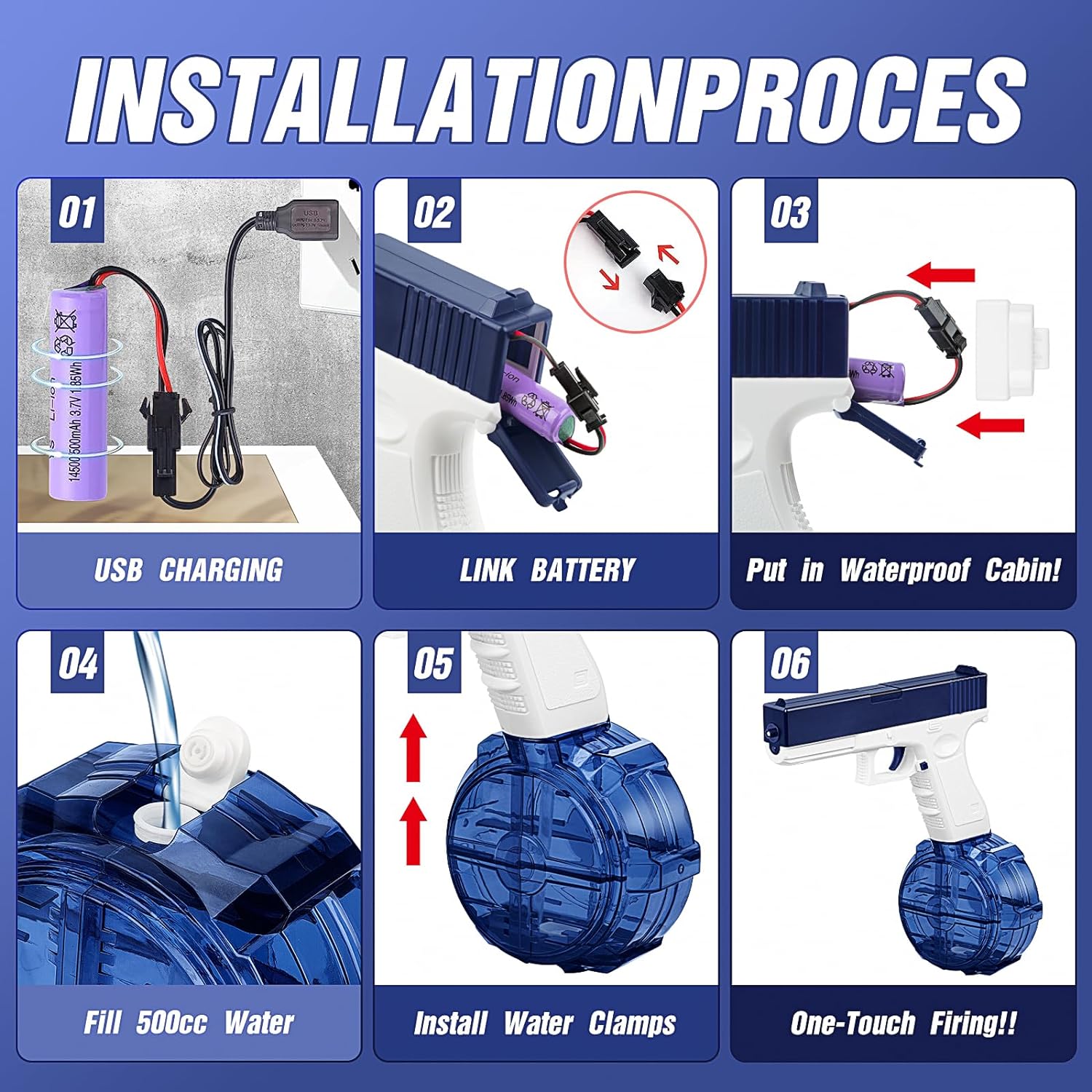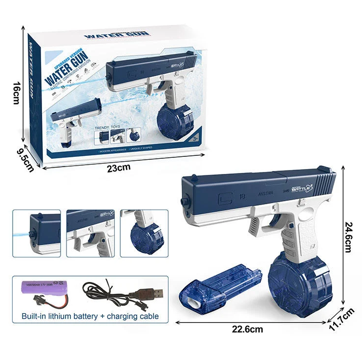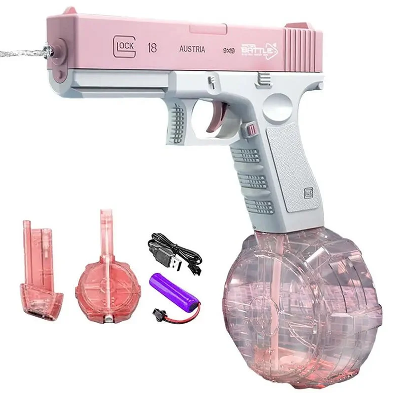 يتميز مسدس ماء ببطاريتين قابلتين لإعادة الشحن لضمان استخدام طويل الأمد وممتع.